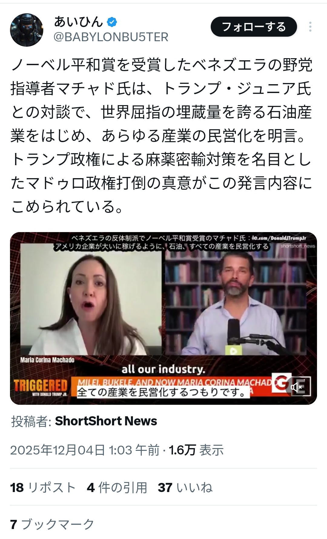 | … | 926/01/07(水)06:55:27No.1390195041+ベネズエラの件に高市がダンマリなの悔しいだろ |