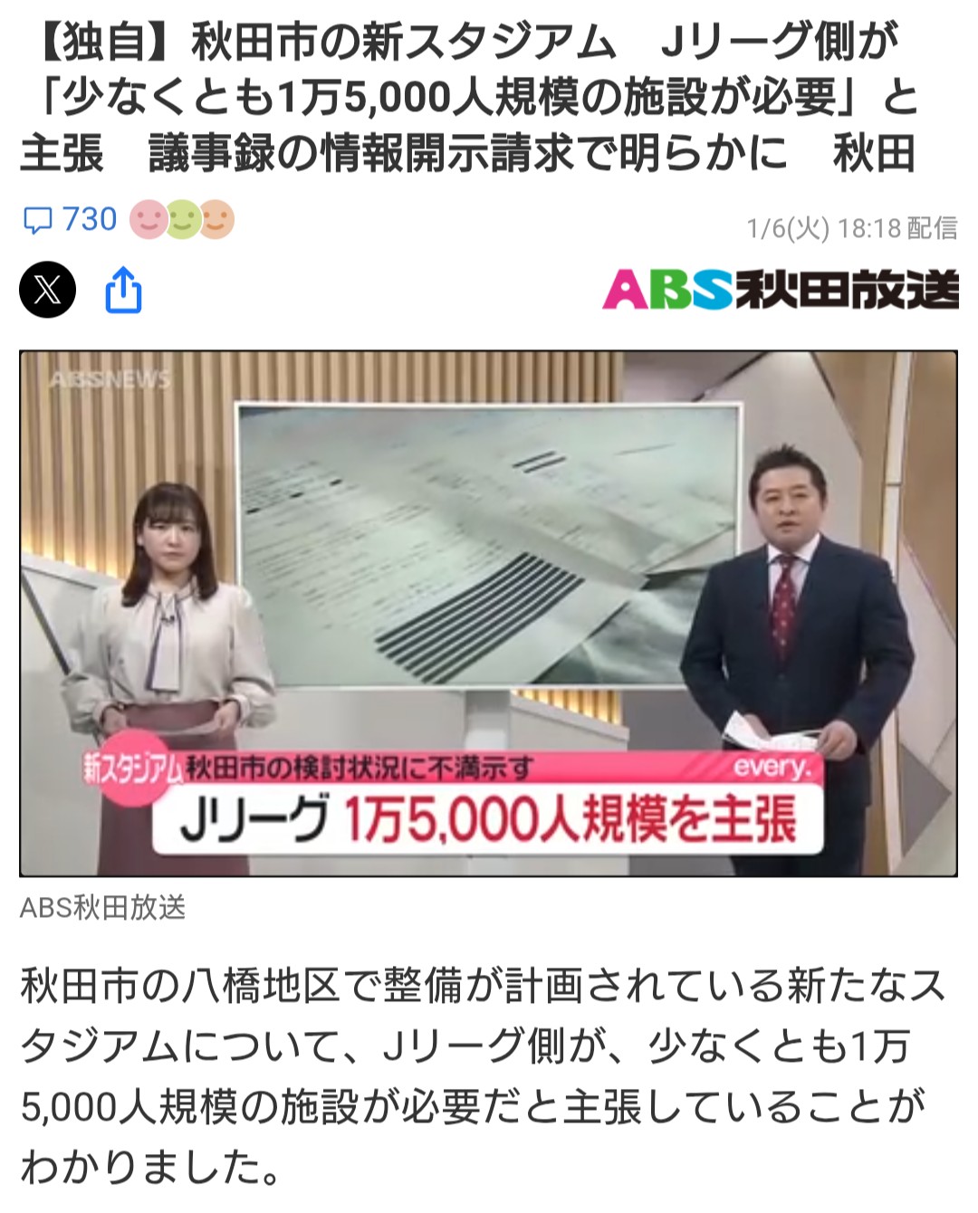 | … | 626/01/07(水)08:50:26No.1390205169そうだねx9秋田市「色んな規模で試算してみたよ。その結果、建設費、維持費から5000人規模のスタジアムまでしか無理」 |