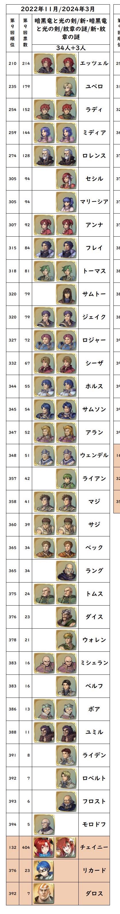 | … | 8426/01/07(水)17:09:50No.1390298560+聖戦のキャラもまあまあ早いうちにあだn来るあたりチョイスはしっかりしてた気がする |