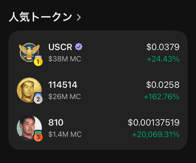 | … | 8126/01/08(木)11:39:06No.1390509986+怪しい暗号資産コインネタにしてた雁木が114514コインの偽物つかまされてるの笑う |