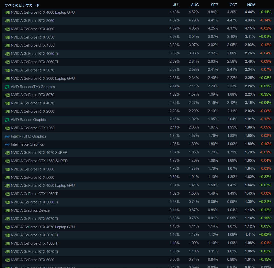 | … | 42626/01/08(木)13:55:07No.1390544367そうだねx1ゲームユーザーの大半はレイトレやフレーム生成なんて関係ない低スペPCだからなぁ… |