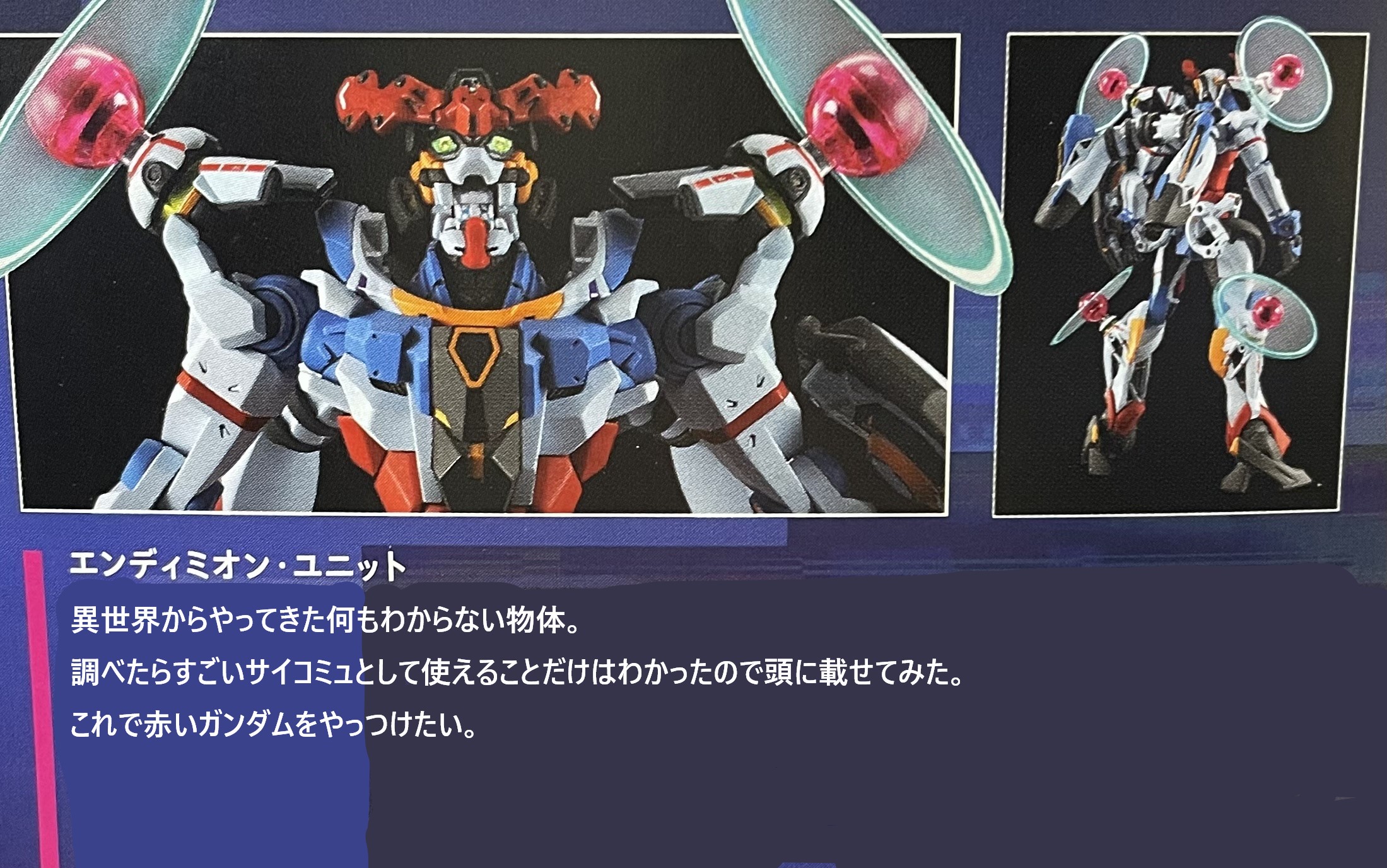 | … | 22926/01/08(木)14:10:07No.1390547358+>エンディミオン・ユニットは、正体不明の超科学オブジェクトを兵器化した強力なサイコミュです。 |