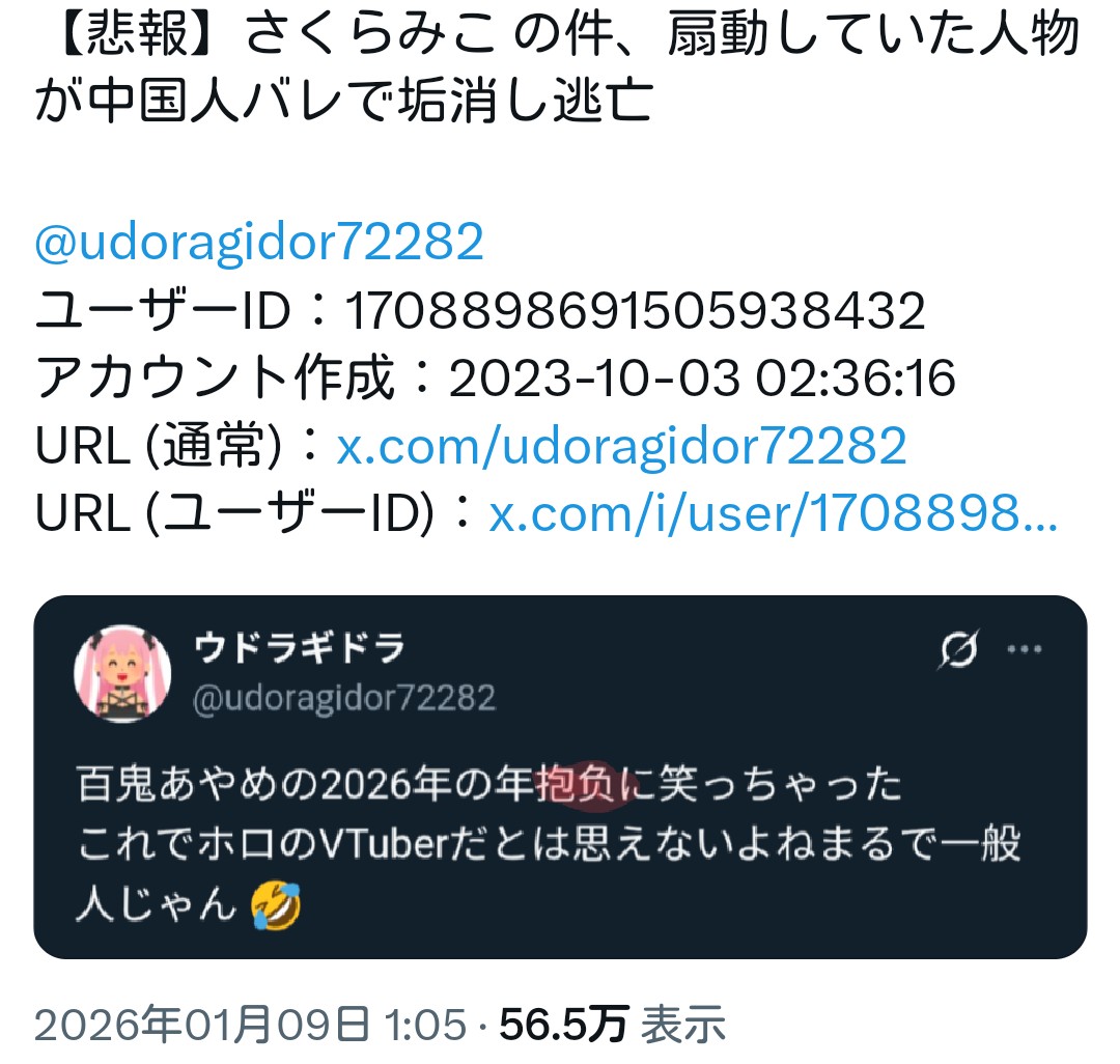 | … | 2326/01/09(金)19:03:55No.1390896042そうだねx3>なーんだ中国人の仕業だったんだ |
