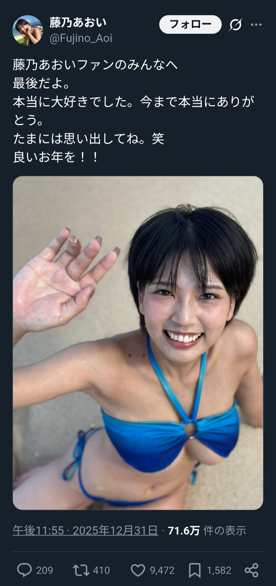 2025年12月31日芸能界引退