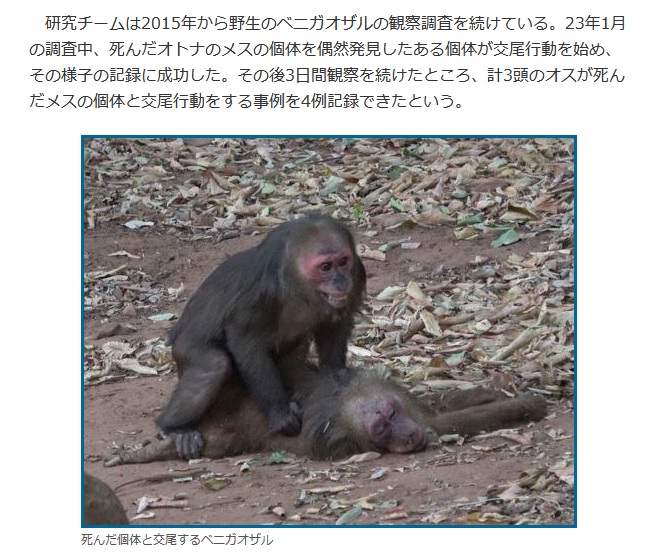 | … | 7626/01/09(金)22:22:02No.1390974620そうだねx3※なお、本研究は、ヒトで見られる「屍姦」を肯定するものではなく、またその生物学的進化起源についての示唆を与えるものでもないことを申し添えます。本観察事例の誤った解釈は社会的秩序に反する議論を喚起する危険性をはらんでいるため、報道機関・メディア各位におかれましては、本事例の取り扱いには細心の注意を払っていただきたく存じます。 |