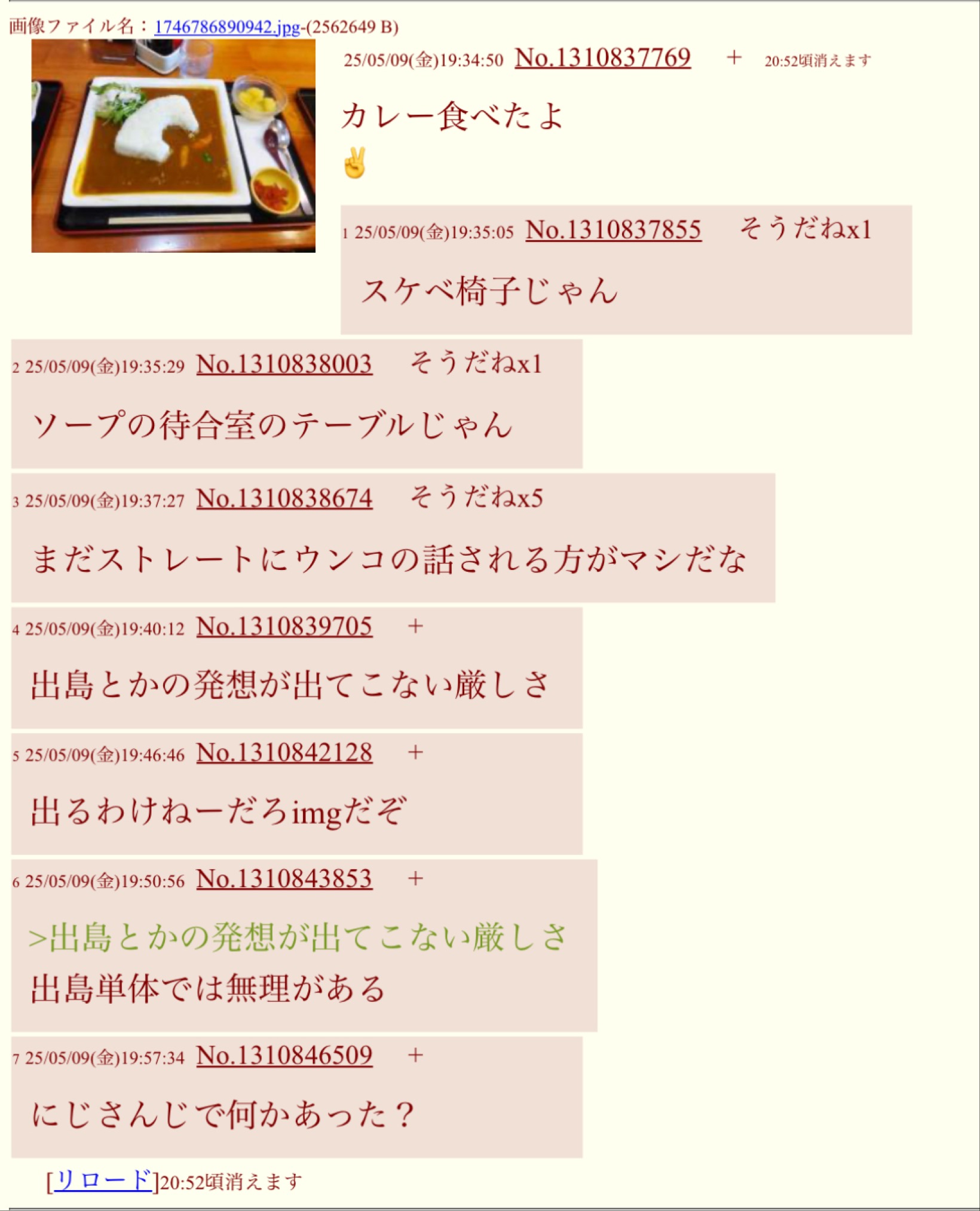 | … | 1226/01/10(土)05:15:57No.1391053003そうだねx4>スケベ椅子や出島みたいな形に盛られたカレーライスににじさんじを見出だす病人だぞ |