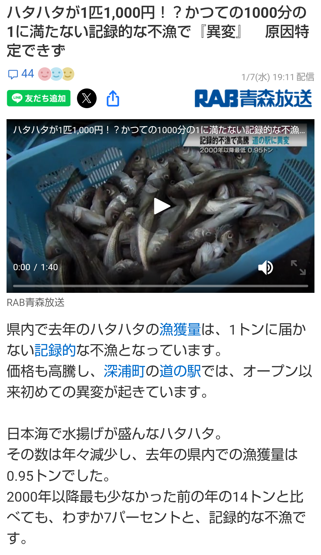 | … | 7426/01/10(土)15:59:39No.1391162442そうだねx1>年間の漁獲枠の30%くらいオーバーする2000トンも報告漏れしてたのが各地でバレてるので |