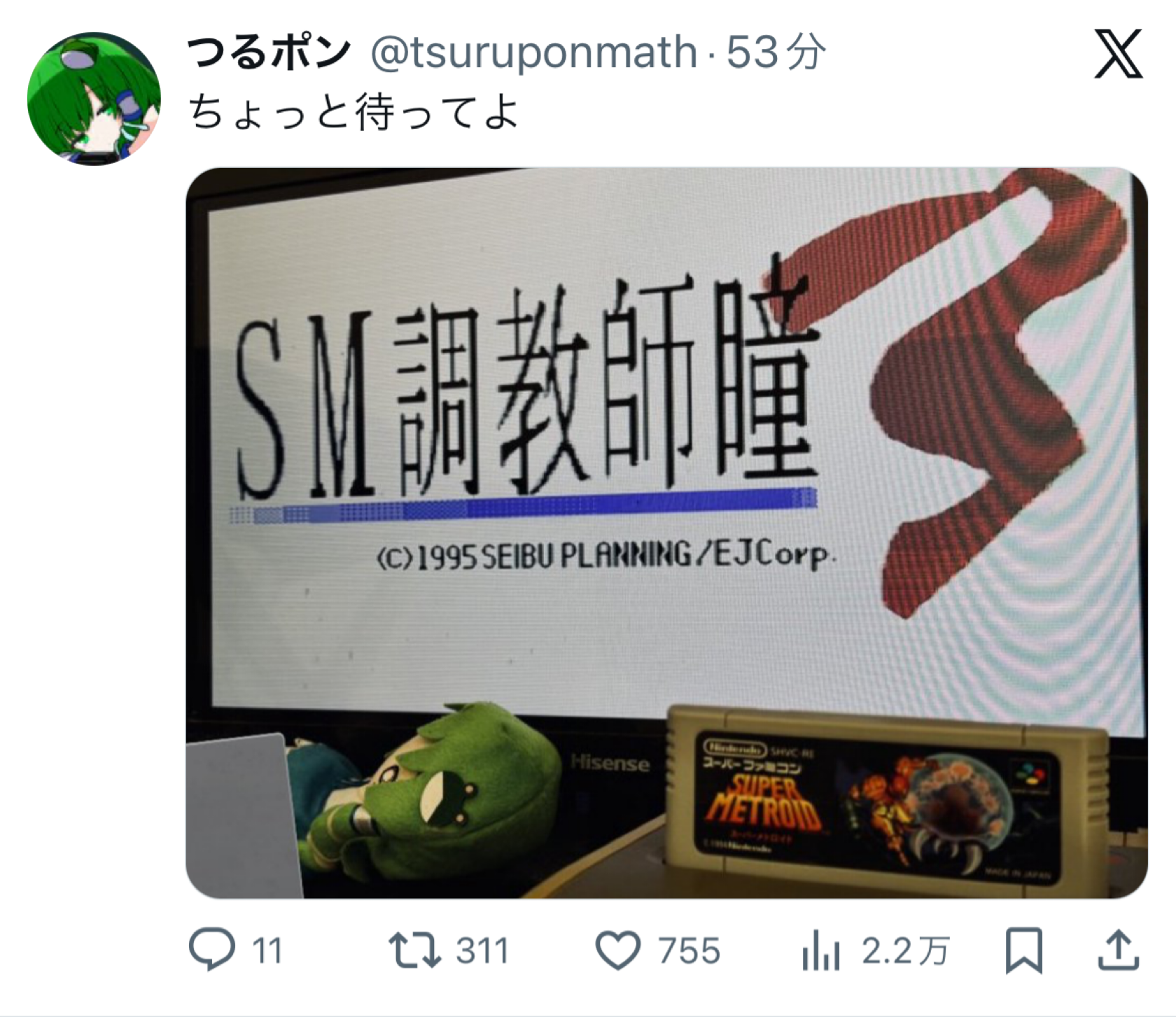 | … | 2126/01/10(土)16:21:51No.1391167468+スーパーメトロイドがやりたかったのに… |