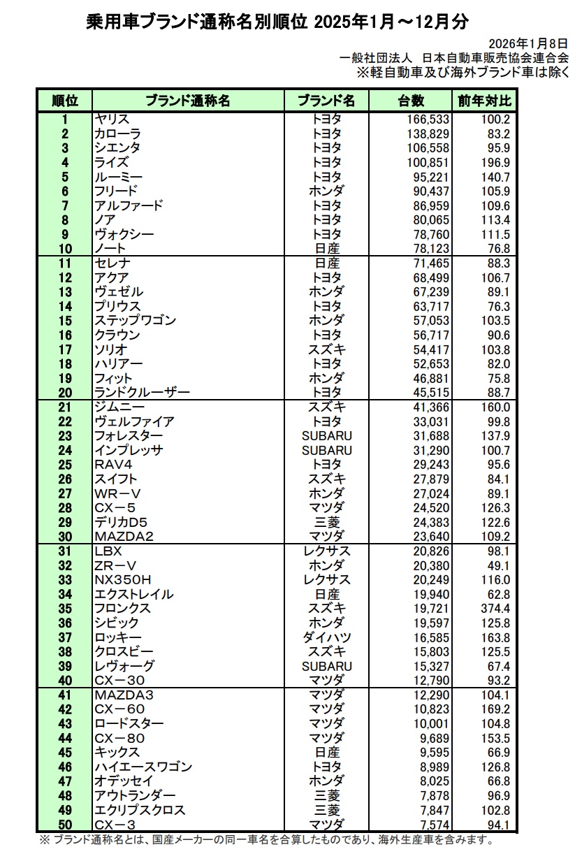 | … | 16926/01/10(土)23:49:54No.1391318750+ノアとヴォクシーも兄弟車だけどこいつ等合算したらヤリスに次ぐな… |