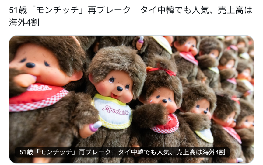 | … | 126/01/11(日)02:17:11No.1391357931そうだねx15モンチッチはもともと海外で人気あるよ |