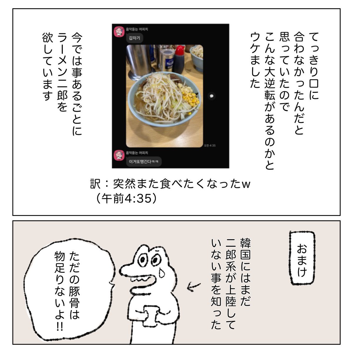 | … | 3326/01/11(日)14:30:41No.1391478139+>二郎食ってしょっぱいし脂っこいし美味しいと思えなかったって韓国に帰った後洗脳されてた韓国の人はちょっと笑った |