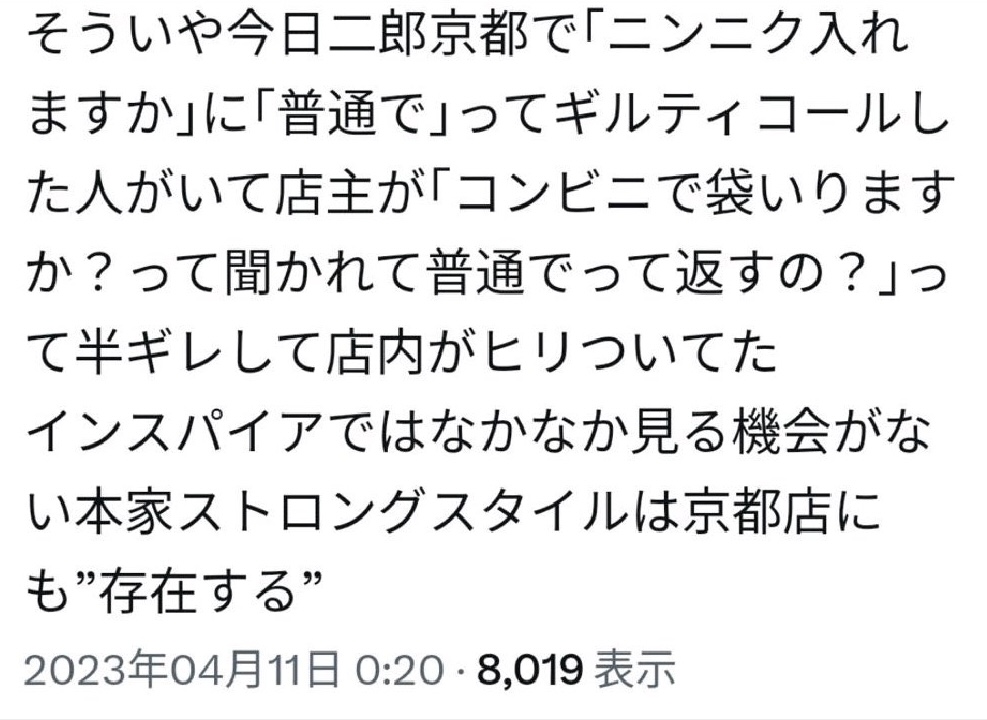 | … | 826/01/11(日)13:59:31No.1391469348+>さすがの二郎店員もGAIJIN相手に威圧的になれなかったのかな |