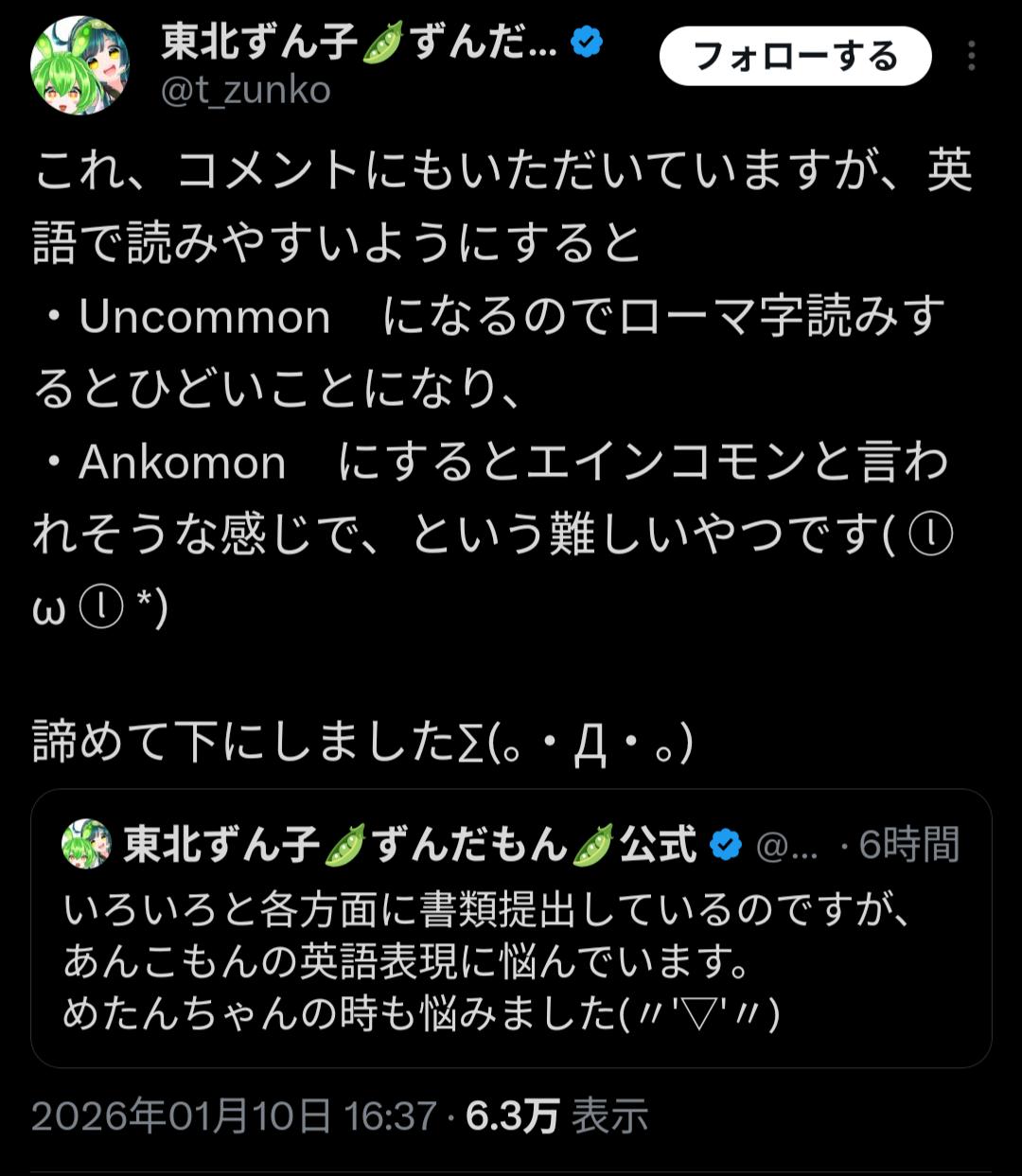 | … | 926/01/11(日)17:47:23No.1391535247+ダークずんだもんなのかと思ったらそうでもないのか |