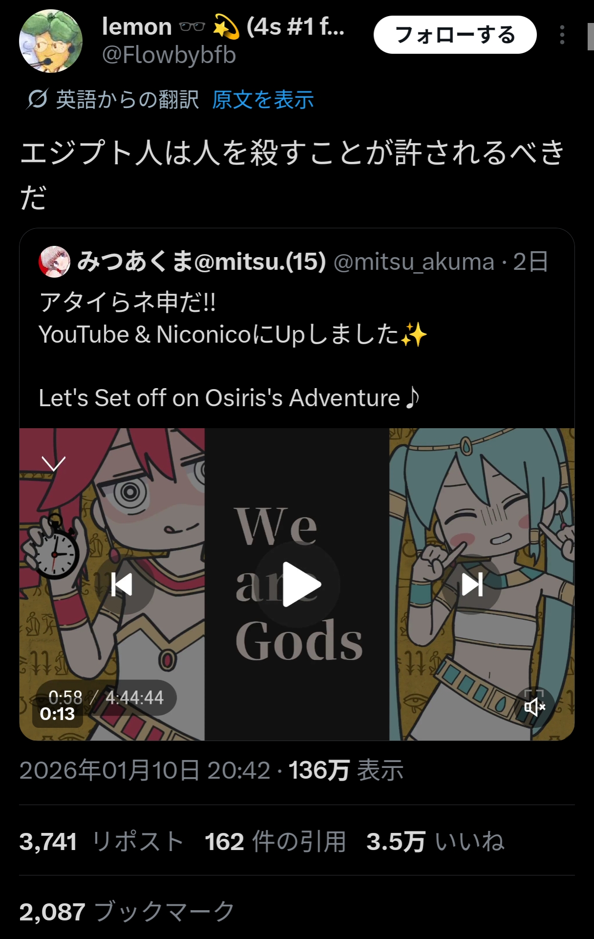 | … | 9726/01/11(日)19:20:00No.1391565733+エジプトがエジプト神話信仰してると思われがちだが |
