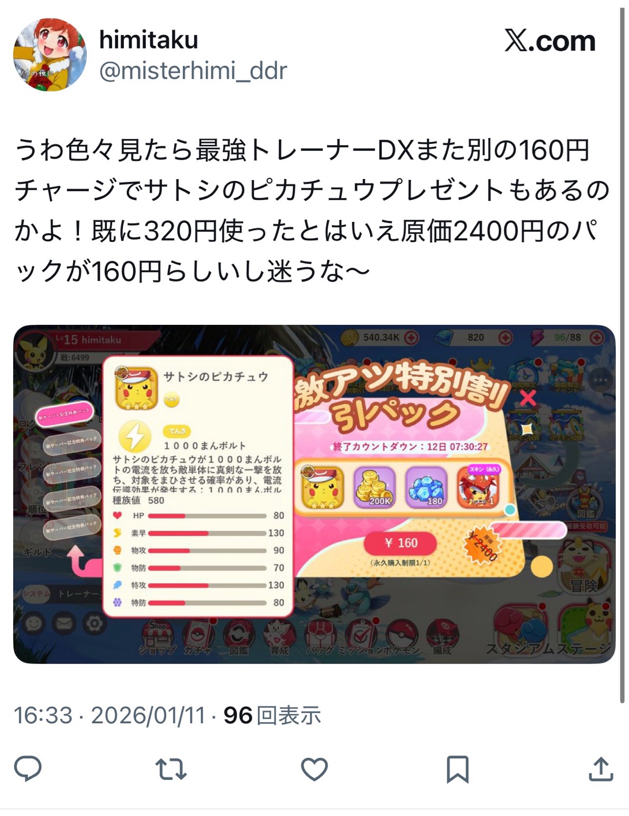 | … | 18026/01/11(日)21:10:33No.1391612991+一応1000まんボルトは公式 |