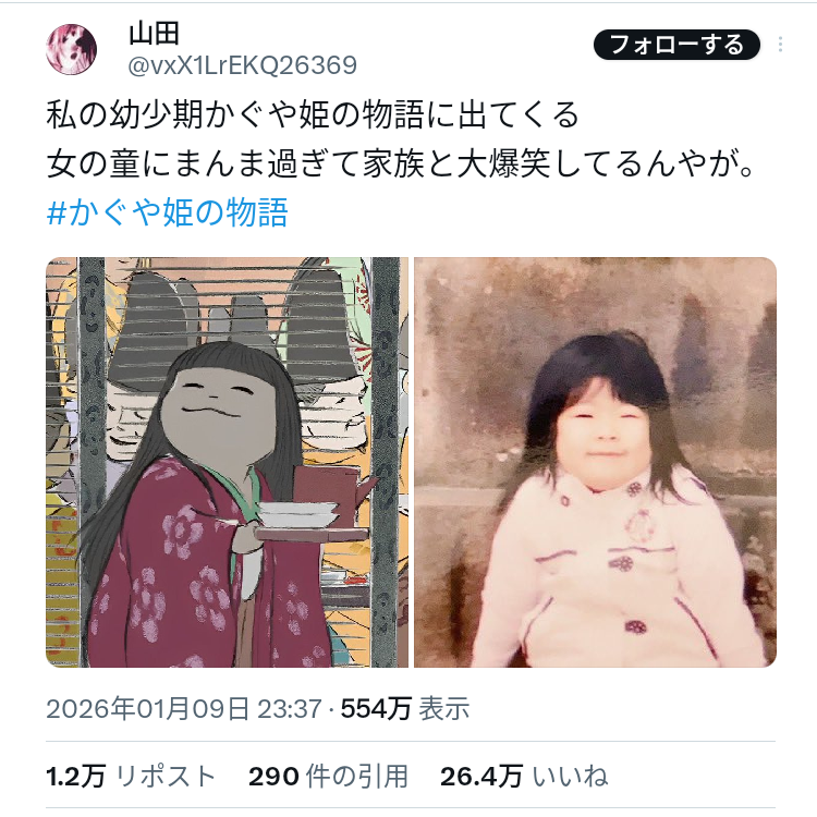 | … | 5126/01/11(日)21:46:36No.1391627193そうだねx1>女童に似てるしかわいいんだけどどことなく高畑勲にも似てる… |