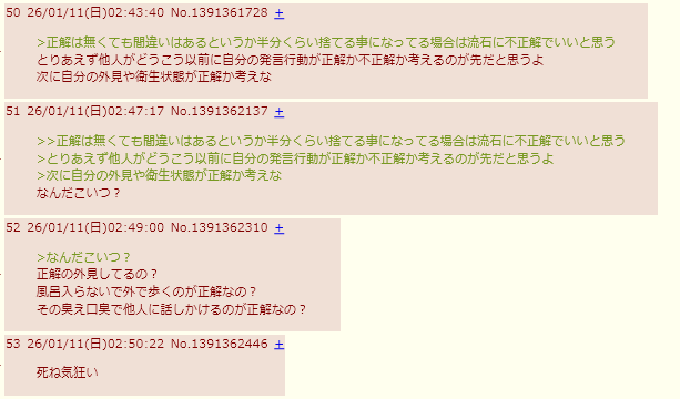 | … | 4026/01/11(日)22:45:42No.1391650166そうだねx1エノキのスレすらまともに管理できないなど恥を知れ恥を |