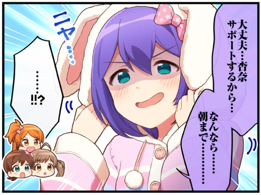 | … | 10226/01/12(月)01:15:58No.1391694295+>今日のPurple Skyのコミュでは志保が響と並んで一番小さい組だった |