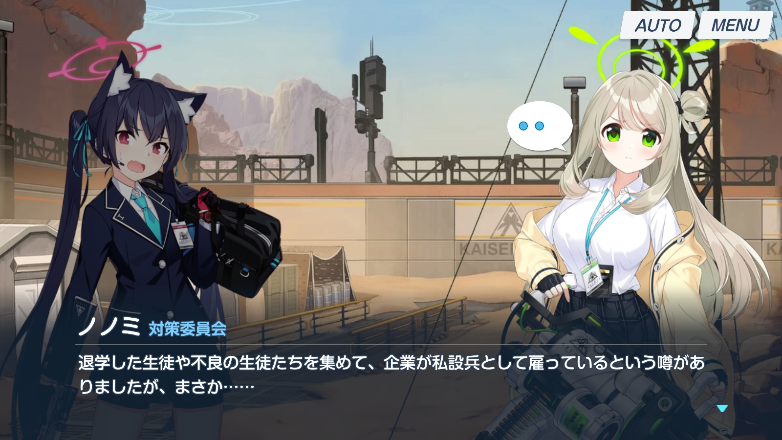 | … | 13126/01/12(月)01:56:30No.1391701310そうだねx1今アビドス2章で砂漠に殴り込みし始めたところなのでアビドス読み終えたら次は多分ミレニアム編? |