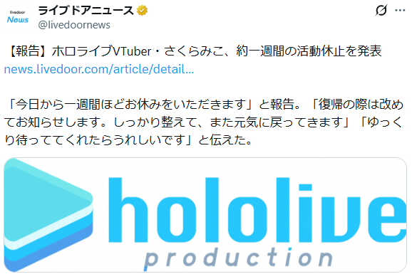 | … | 2426/01/12(月)10:32:16No.1391746585+朝の情報番組とかでアナウンサーがたまに休み取ったりするのと似たようなもんか |