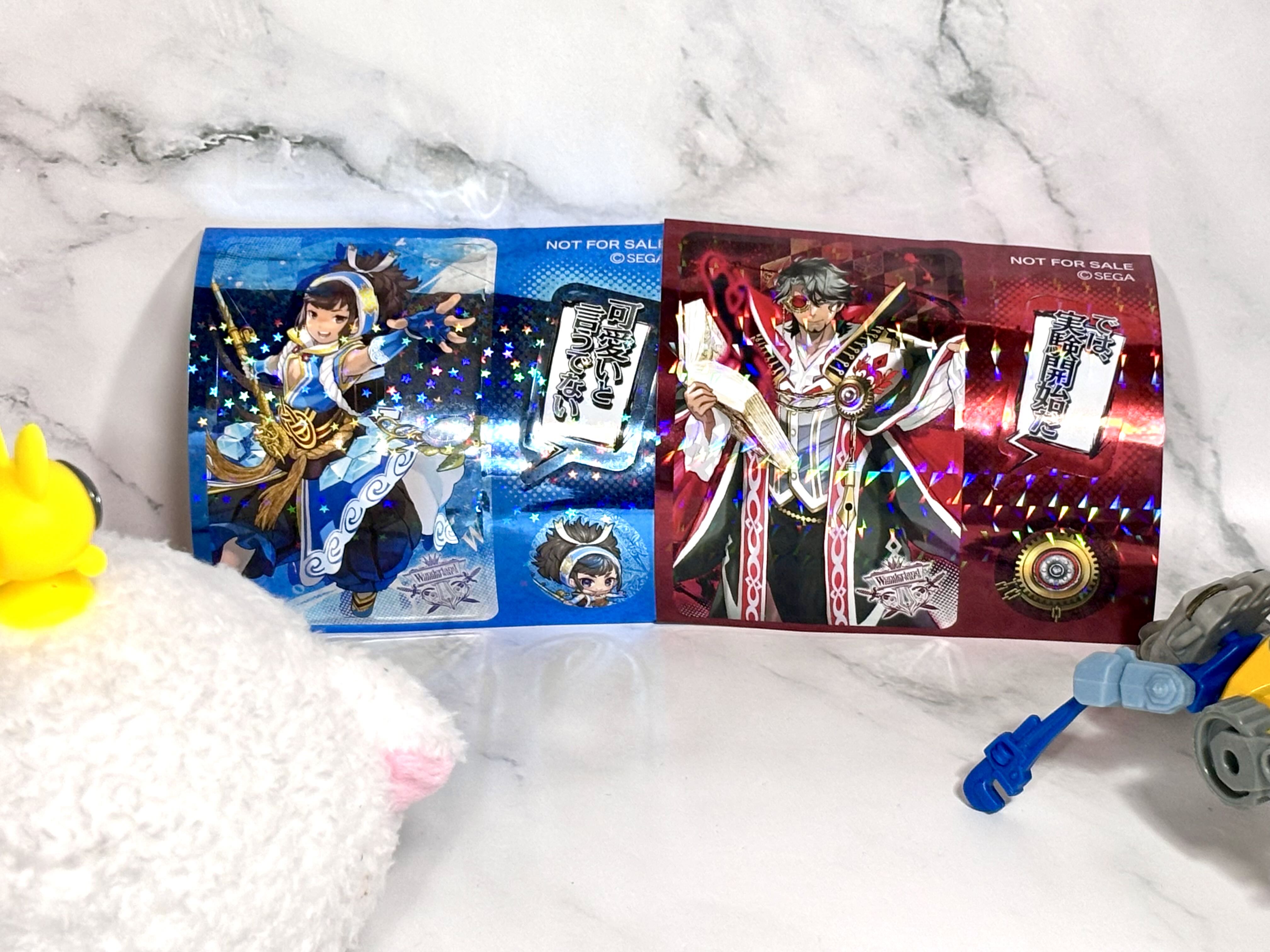 | … | 44526/01/12(月)21:27:21No.1391934643+>ワンダーランドウォーズのステッカーはプレイ回数でゲーセンで交換できるキャンペーンの商品だな >1等がサントラとかで人気あるからだいたい真っ先に品切れになってた記憶がある タペストリーサントラ色紙ラバストにミニフィギュアやUSBなんてのもあったね ステッカーはまぁ余ったポイント消化用だった |