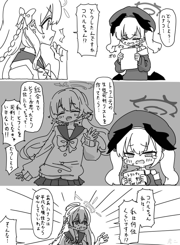 | … | 3526/01/12(月)21:23:26No.1391933173+>ハナコは平凡な順位だったけどアズサはギリギリ死刑にしなきゃいけないの… |