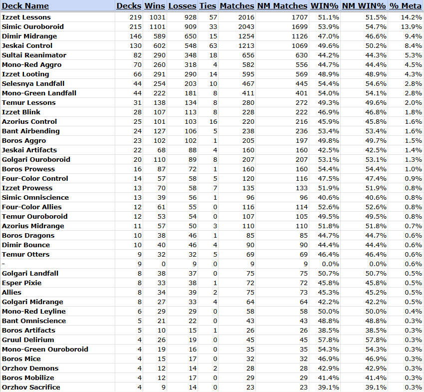 | … | 5126/01/13(火)22:00:05No.1392235707+ちなみに11〜10勝ラインを見るとイゼット講義orシミックウロボロイドの数がとんでもない量になってる |