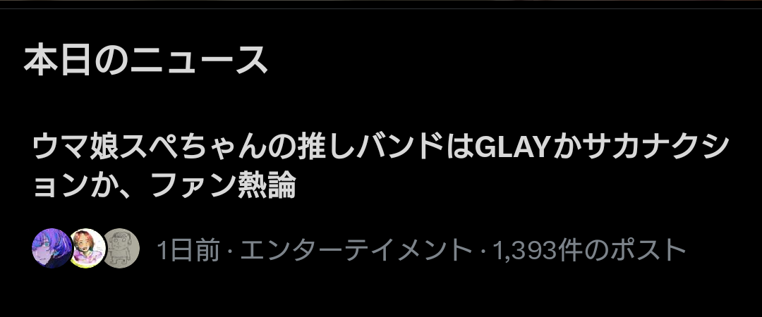 | … | 6626/01/13(火)22:56:23 ID:oa8Wr6NoNo.1392256768そうだねx5>>GLAYがウマ娘主題歌を歌った世界もあるかもしれません |