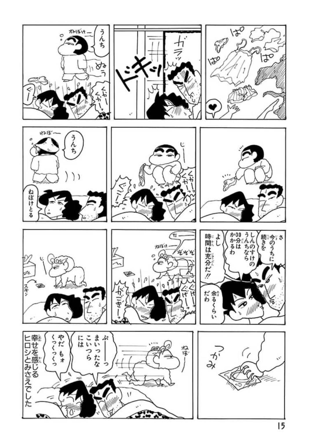 | … | 326/01/14(水)02:50:44No.1392307607+ひろしとみさえがセックスしようとするけどしんのすけが全然寝ない回あったよね |