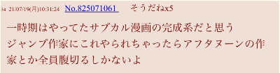 | … | 6926/01/14(水)08:09:49No.1392324109+私は…面白くない漫画はなくなった方がいいと思いますが |