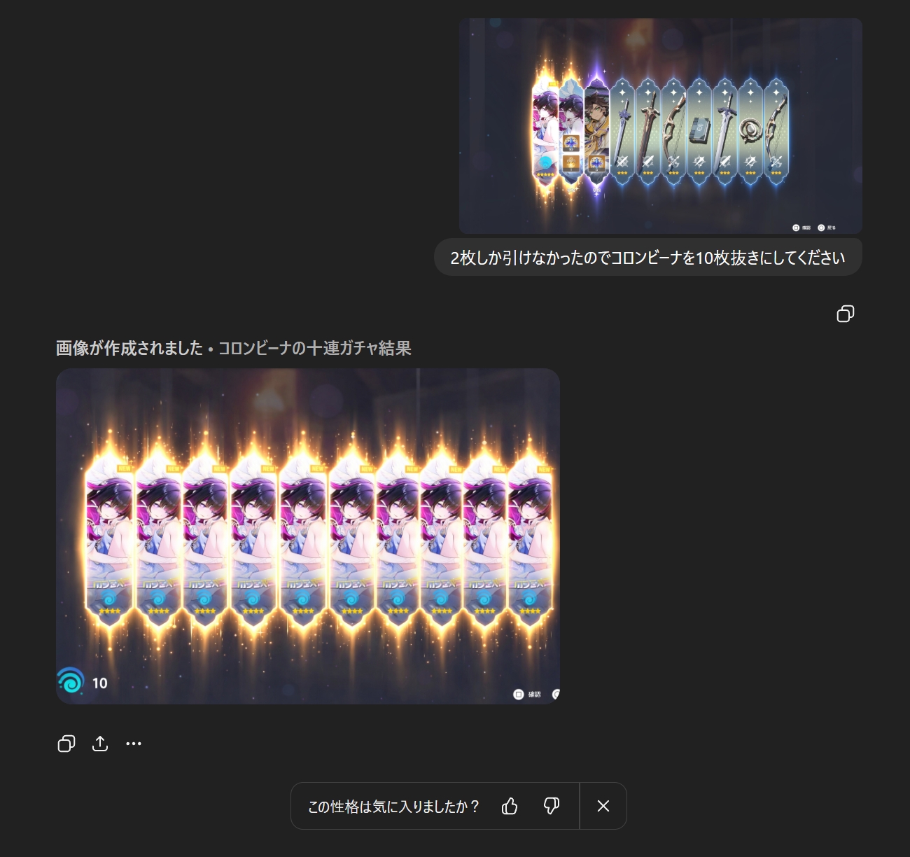 | … | 3726/01/14(水)11:34:42No.1392354684+こくせーすり抜けからの20連でコロンビーナ出て |