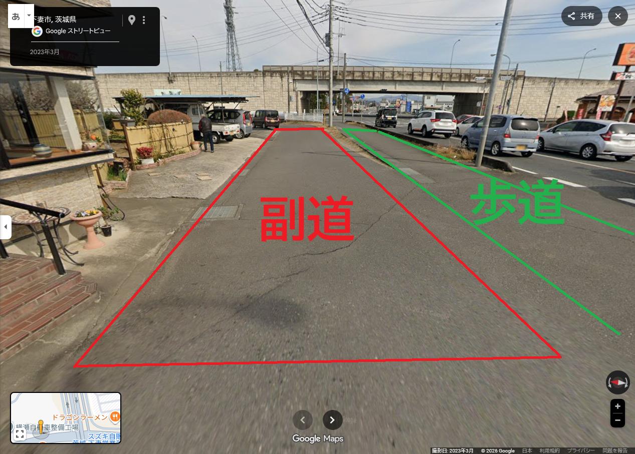 | … | 3726/01/14(水)12:42:23No.1392371388+>歩道の顔に変わってなくない?副道は奥に続いてるし |