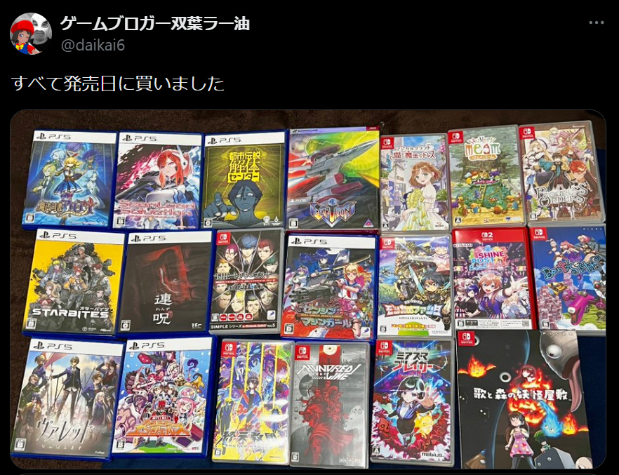 | … | 426/01/14(水)12:10:26No.1392361737そうだねx16>この人が去年パッケージで買った完全新作を並べてるだけ |