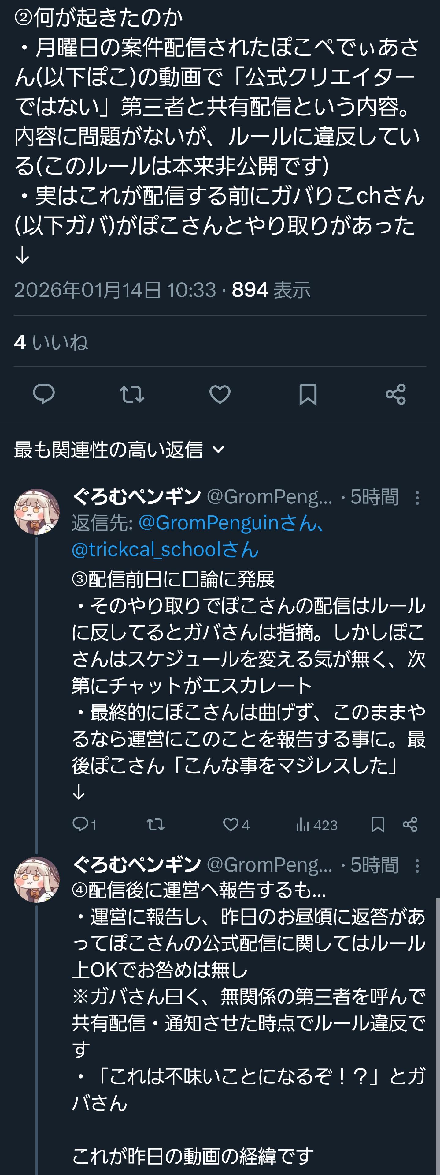 | … | 3026/01/14(水)16:31:41No.1392415894+昨日なんか知らん告発とかしてたけど動画消したんか |