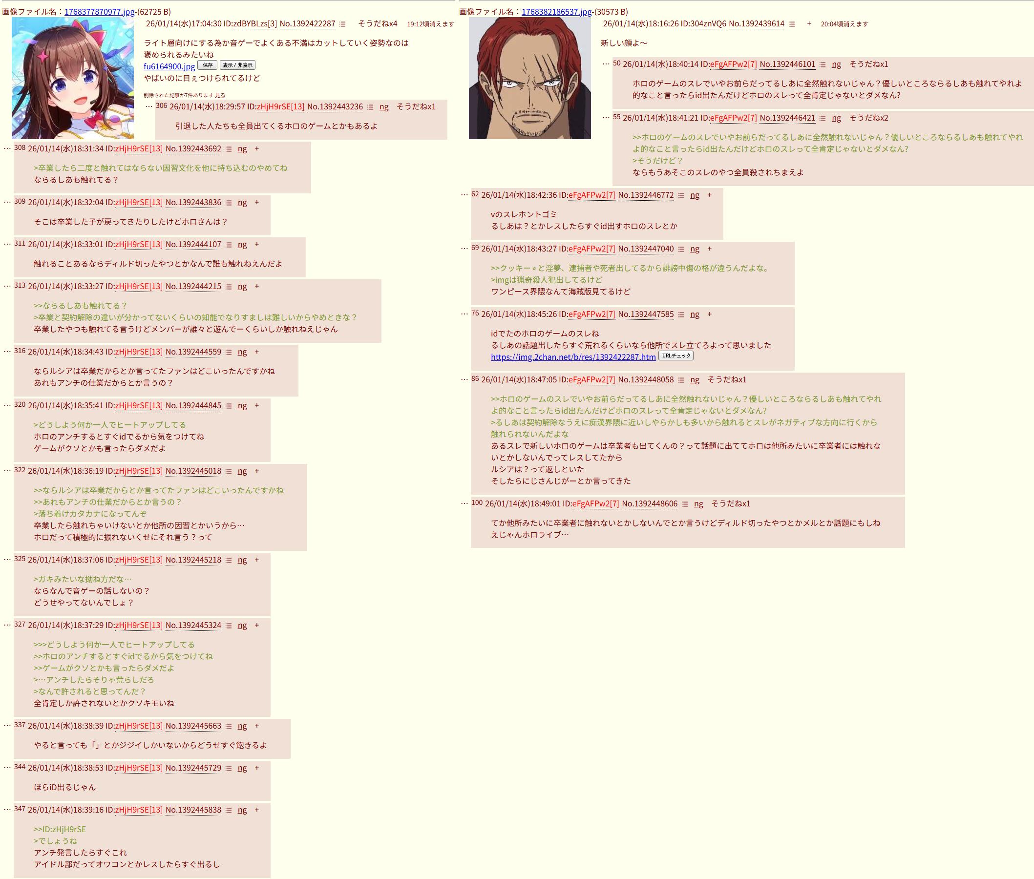 | … | 11026/01/14(水)20:32:44No.1392485040そうだねx7>にじさんじが悪でホロライブが被害者なんでしょ |
