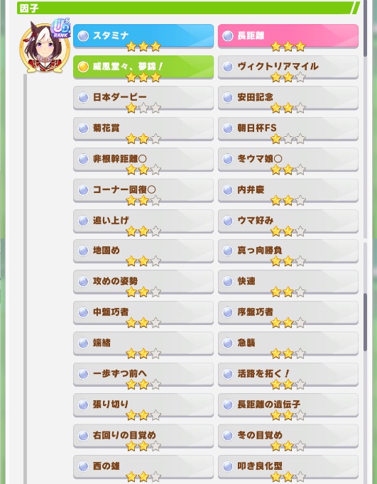 | … | 4026/01/15(木)10:17:43 ID:xKX/xIbkNo.1392618797+パッと見でそのスキルがどの脚質のものか分かる仕組みは欲しくなってきました |