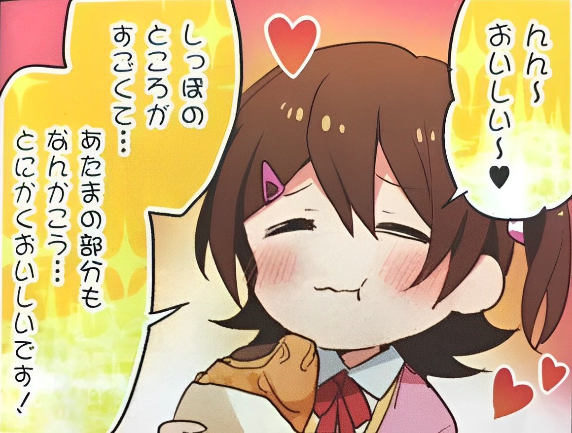 | … | 3826/01/15(木)12:45:19No.1392649091そうだねx2>どうしてしっぽ食べる前にしっぽに言及を…? |
