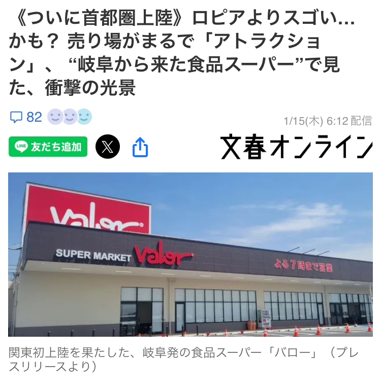 | … | 30426/01/15(木)15:07:11No.1392679826+>東京にバローができるって逆に東海地方で言うとどこのスーパーが来る感じのインパクトなんだろう |