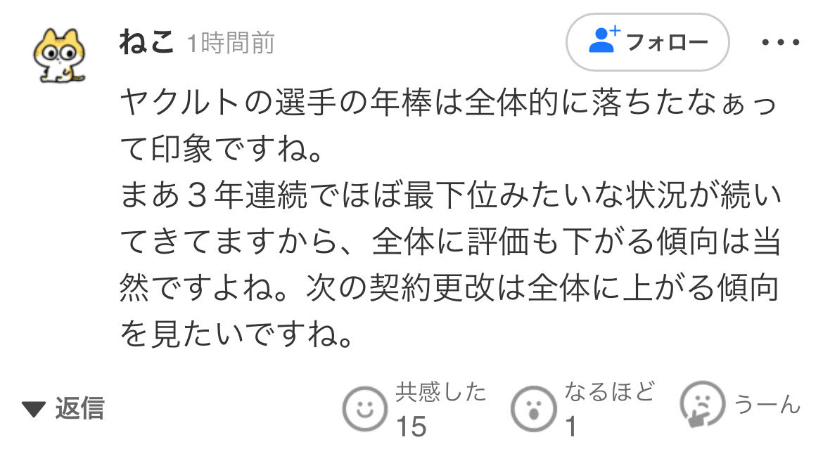 | … | 6026/01/15(木)19:27:20 ID:.RDt2AW2No.1392739832そうだねx1>シーズン半分の額と年俸同じは現状維持扱いでいいんでしかね…? |
