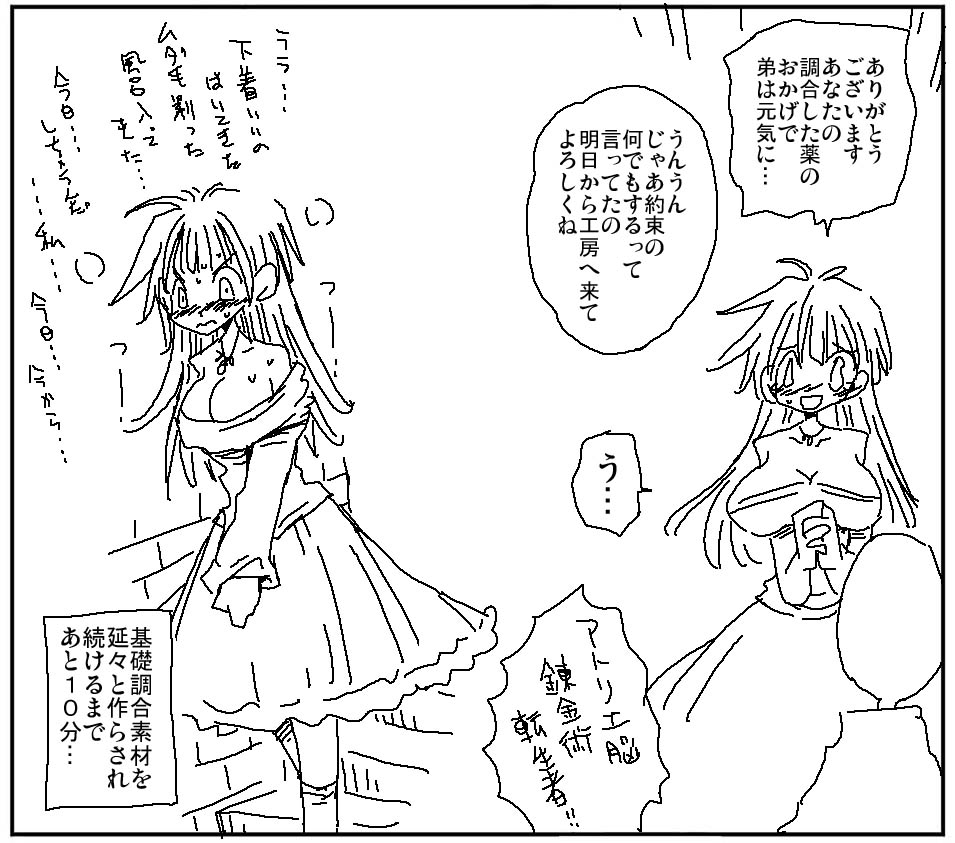 | … | 3826/01/15(木)19:11:50No.1392735010+この時代のアトリエにセックスの機能はついてないからな… |