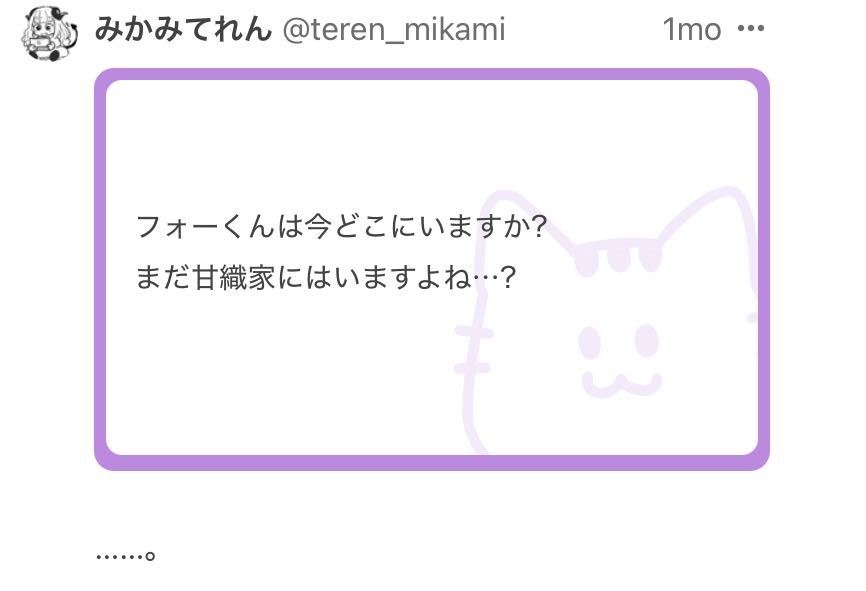 | … | 526/01/15(木)23:35:13No.1392829631そうだねx3>わたし…すてられちゃうの…?(小文字) |