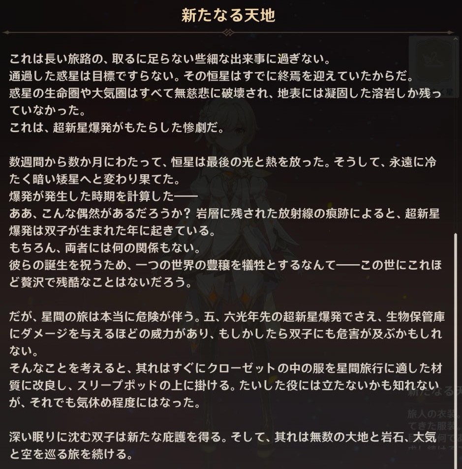| … | 8126/01/16(金)00:05:50No.1392838928+今回明かされた外からみたテイワットのサイズ感的に少なくとももう大陸と呼べる土地置けるだけのスペースはなさそうだぜぇ |