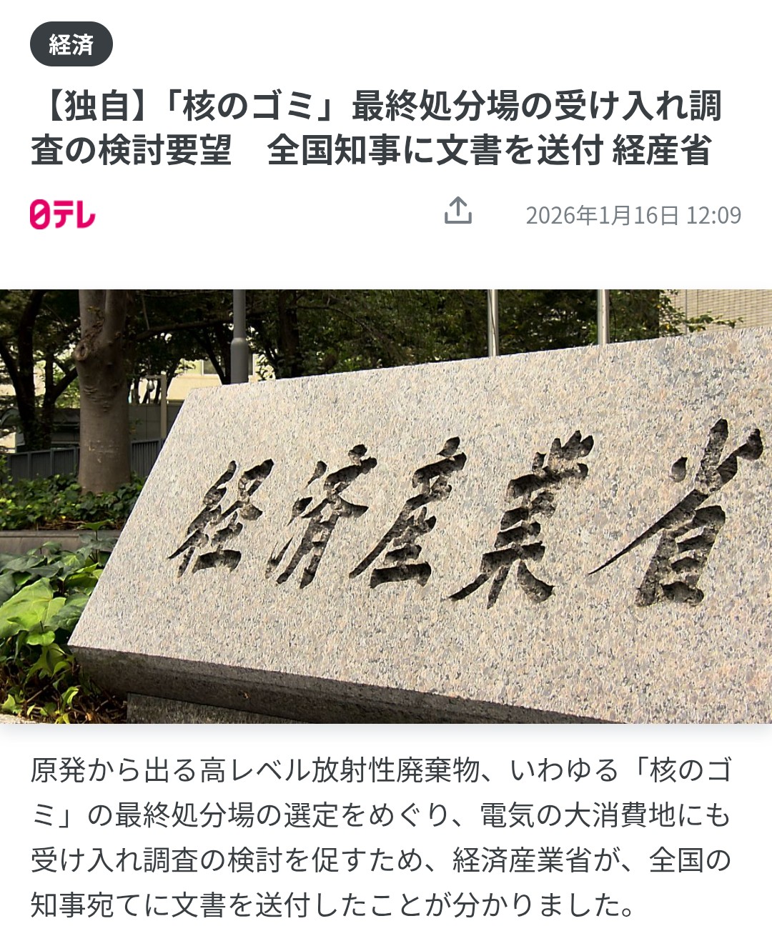 | … | 226/01/16(金)13:51:56No.1392947616そうだねx28こんなもん総理官邸の庭に埋めときゃいいのに安全なんでしょ? |