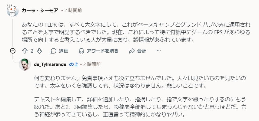 | … | 1026/01/16(金)18:29:59No.1393002396そうだねx10>DLC買って入れたらfps下がるとかなら分かるけど上がるのは面白すぎる |