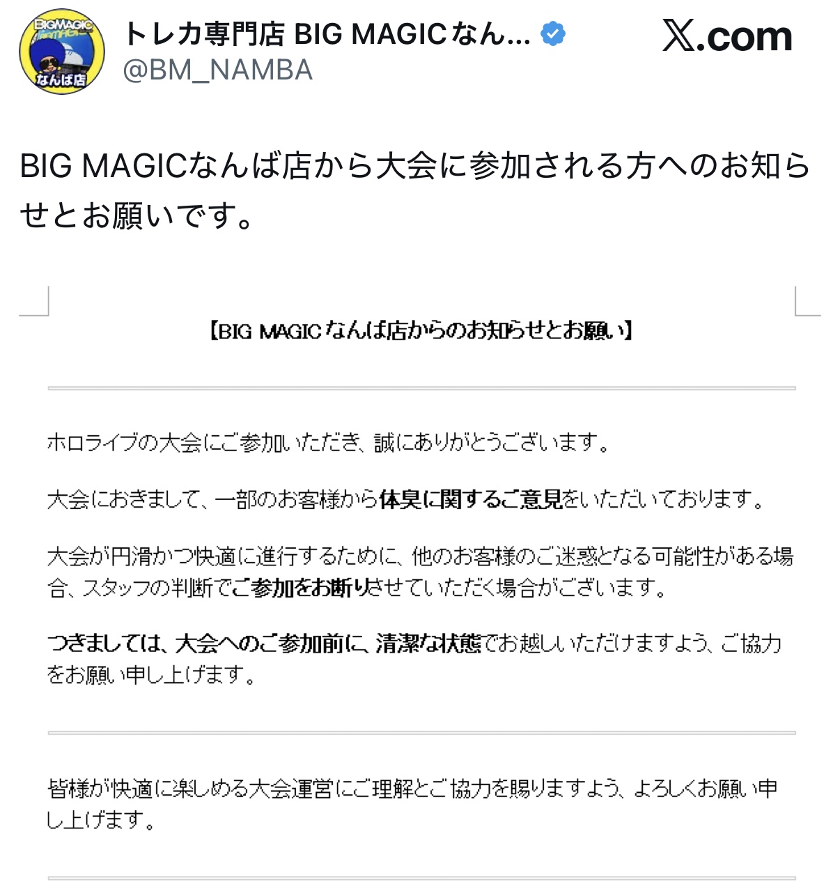 | … | 1826/01/16(金)20:40:05No.1393049627そうだねx13これって確か開催されてない大会に事前に苦情入ったからみんな注意してねって告知だったっけ |