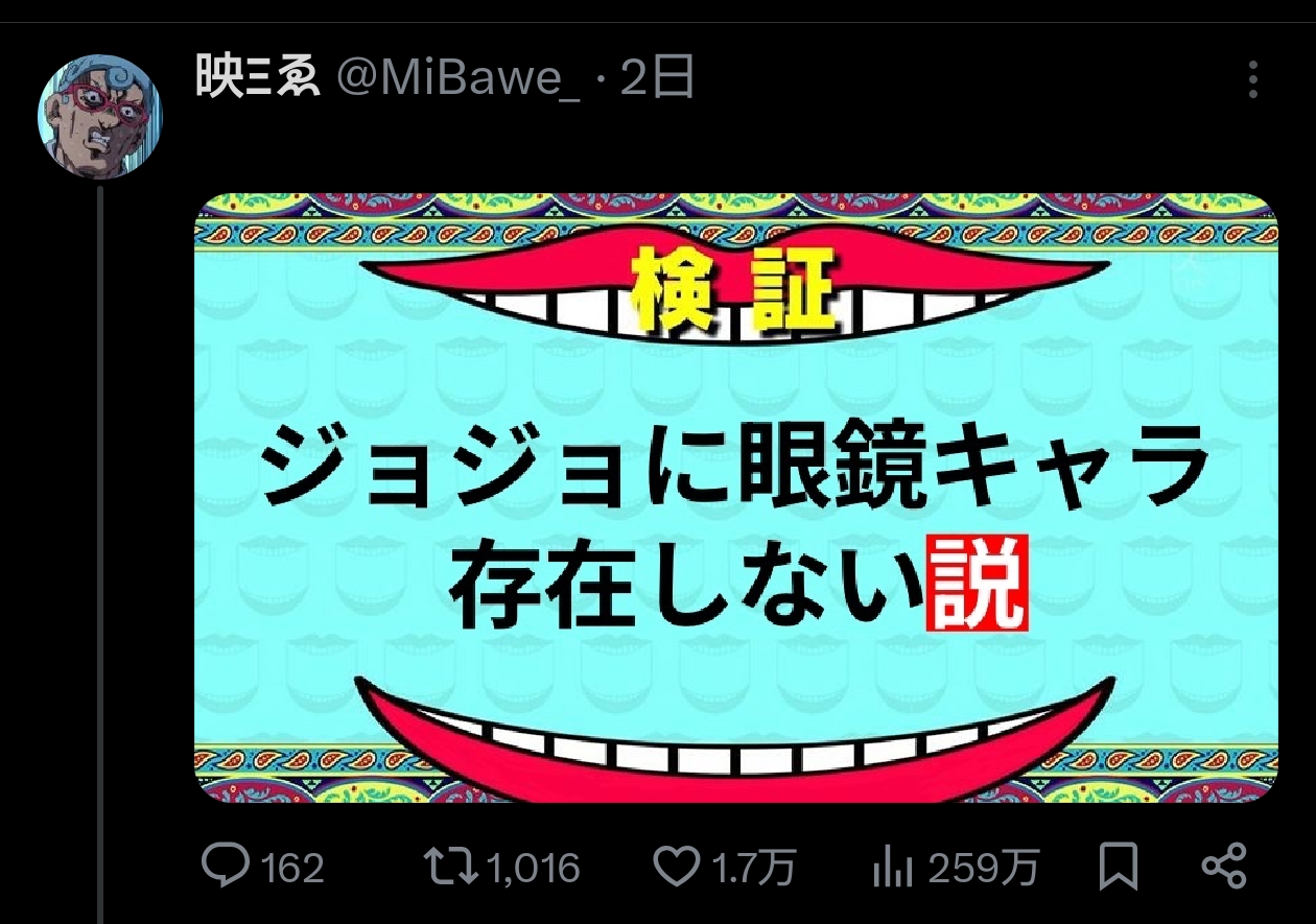 | … | 1226/01/16(金)23:19:36No.1393121029そうだねx1歴代主人公で絞っても4部ジョセフが老眼鏡してるし… |