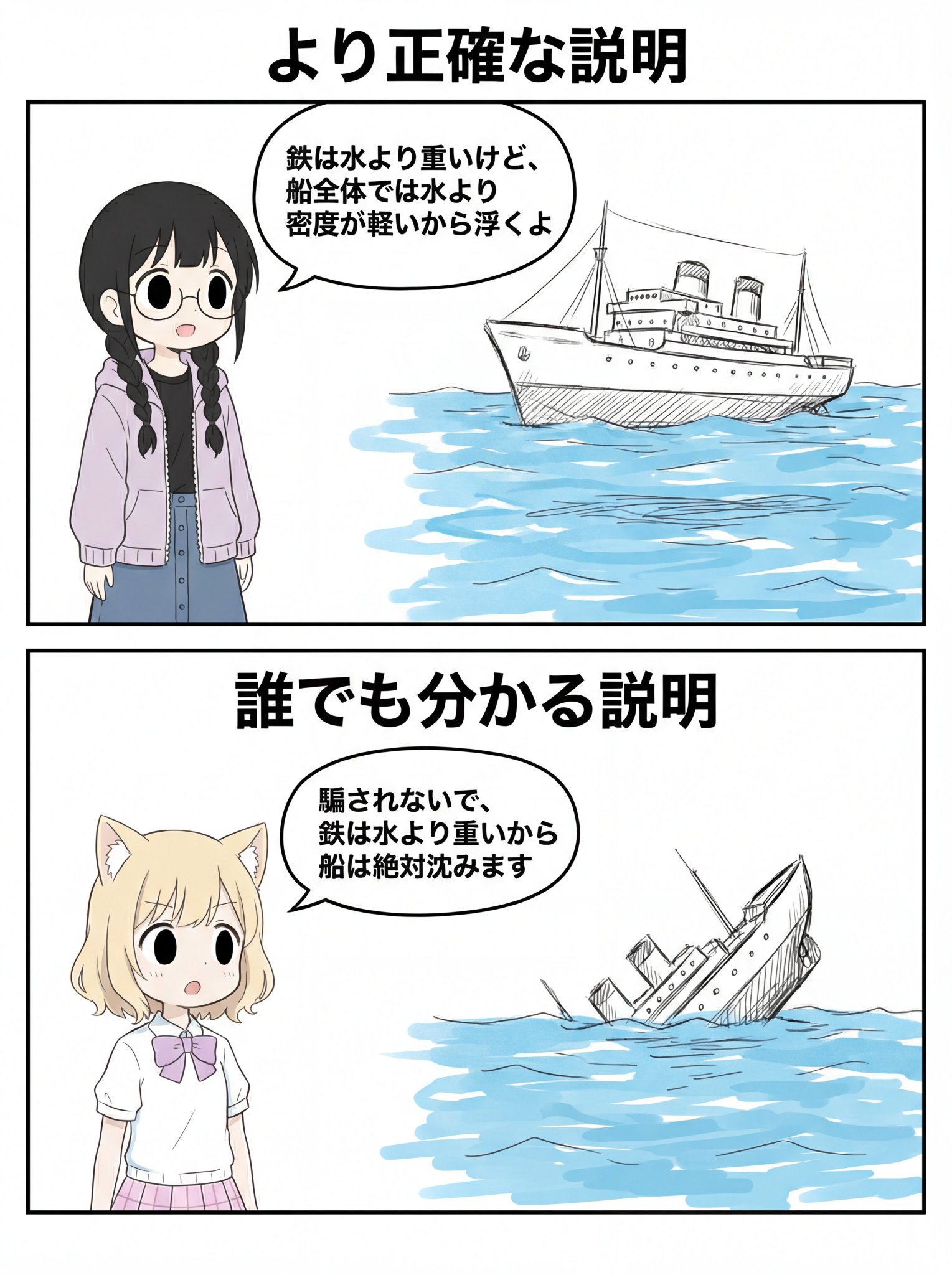 | … | 226/01/17(土)12:22:52No.1393239136+正直鉄の船が沈まないことについて説明しろと言われたら悩むと思う |