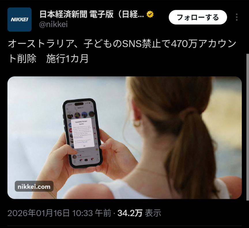 オーストラリア、未成年のアカウント470万削除このスレは古いので、もうすぐ消えます。