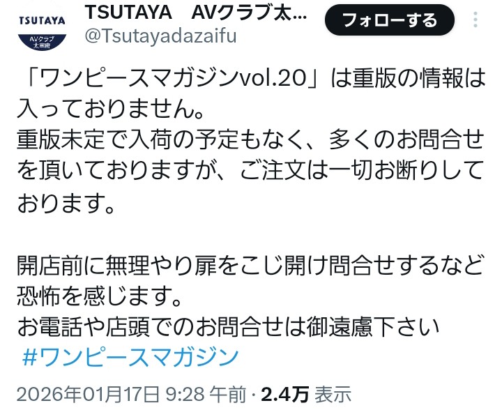 | … | 1326/01/17(土)22:50:33No.1393448937+転売屋じゃなければ逆に怖い |