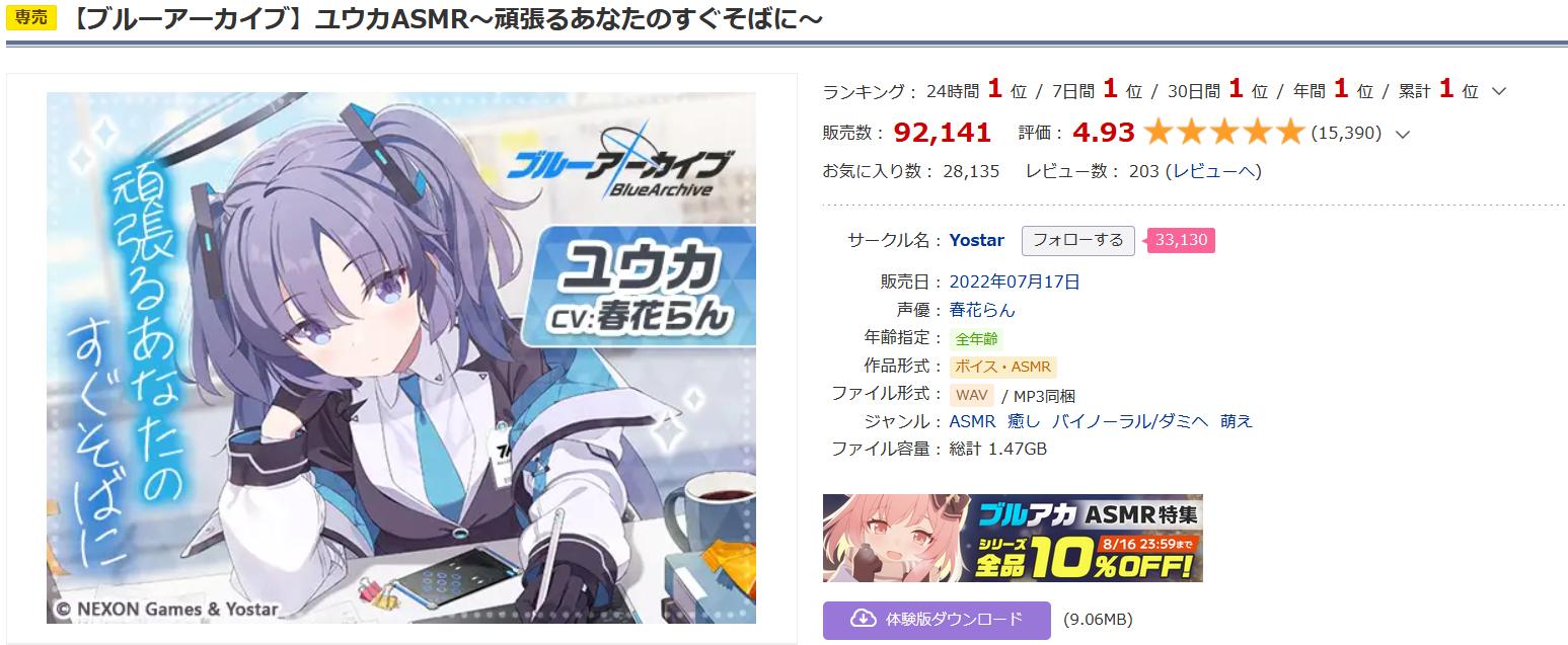 | … | 3726/01/18(日)00:57:02No.1393494011+ブルアカASMRが10%割引になるのは新作発売直後だけだぜ! |